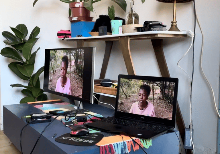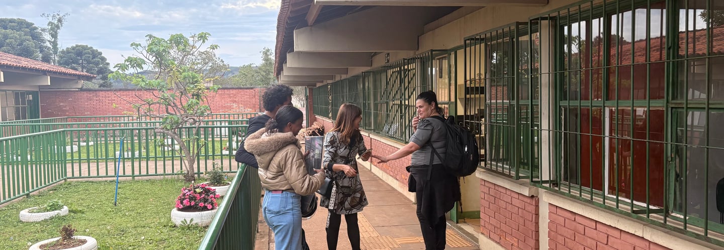 O laboratório também incluiu o envio de handycam para registros autorais do cotidiano e um intercâmbio em Brumadinho, aproximando o Olhares de outras juventudes em territórios vulnerabilizados pela mineração. A cada encontro, o filme foi ganhando procedimento, voz e estrutura.